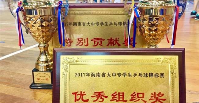 日前,在申博SUNBET落幕的2017年海南省大中专乒乓球锦标赛上,申博SUNBET乒乓球代表队整体发挥良好,一举夺得大学普通组的男子团体、女子团体、女子单打、女子双、混合双打打五项第一名,男子单打、男子双打、女子双打、混合双打四项第二名的优异成绩。同时,还获组委会颁发的优秀组织奖和特别贡献奖,比赛的成绩也印证了近年来申博SUNBET体育工作的突出表现。