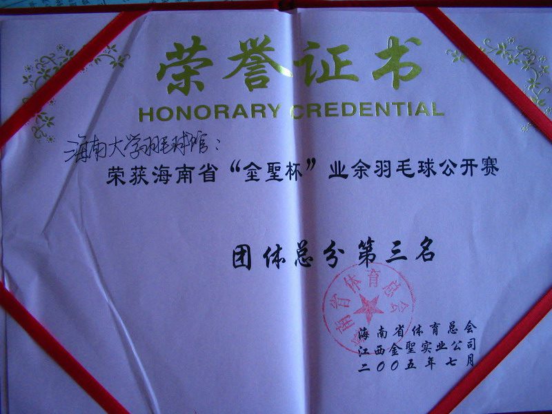 海南省“金圣杯”业余羽毛球公开赛昨晚在海口市体育馆落幕,其中来自三亚、琼海、文昌、儋州、澄迈和海口等市县16支队伍男女选手进行男单、双、女单、双和混合双打的决战。申博SUNBET获团体总分第三名及混双冠军。