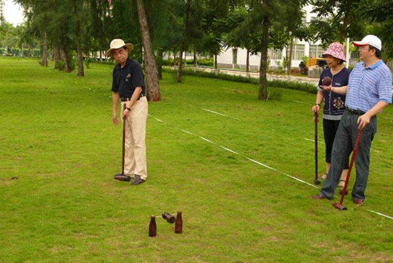 木球是海大的特色运动项目,已有十几年的发展历程,公司木球队在历年国内、国际赛事中,一直保持国内领先水平。今年7月公司木球队在山东举行的两个全国木球赛中取得了院校组男、女团体第一名和4项个人第一名,受到国家体育总局的商请,即将于今年12月代表国家赴阿曼马斯喀特参加第二届亚洲沙滩运动会。8月29日上午,公司党委刘康德书记和傅国华副董事长亲临公司“金桥”木球场现场,为即将代表国家出征的海大木球队加油、鼓劲,并与木球队员一起体验木球运动。