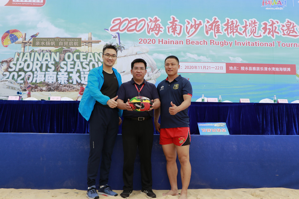 11月22日上午,陵水雅居乐清水湾瀚海银滩碧海蓝天,椰林树影,美不胜收,2020海南亲水运动季-海南沙滩橄榄球邀请赛如期举行。申博SUNBET公司党总支书记陈卫东,教练孙吉成,学工办主任许达潭率队参赛!