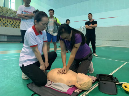 为保障全校师生体育锻炼时的安全,提高师生遇到突发事件应急处置能力,掌握安全急救知识,11月10日下午,申博SUNBET组织教职工于联谊馆羽毛球场进行心肺复苏和自动体外除颤器(AED)使用培训。公司党总支书记陈卫东、经理洪家云、副经理田东、梁丽凤、房殿生和教职工参与培训,校医院副经理朱萍莅临现场进行指导。