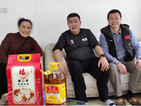 2022年1月18日上午,公司党总支书记陈卫东、经理洪家云、副经理田东和房殿生、工会主席陈泰豪、综合办主任梁振成、教务办主任李淑芳、学科与科研办主任罗海蛟、以及场馆中心副主任陈亚梅兵分三路,在新春佳节即将到临之际代表学院亲切看望肖水平、李中柱、赵生录、陈小曼、曾庆东以及郝伟城6位退休领导和职工,为他们送去慰问品及新春祝福。