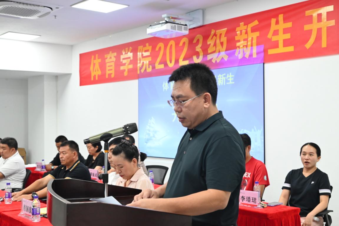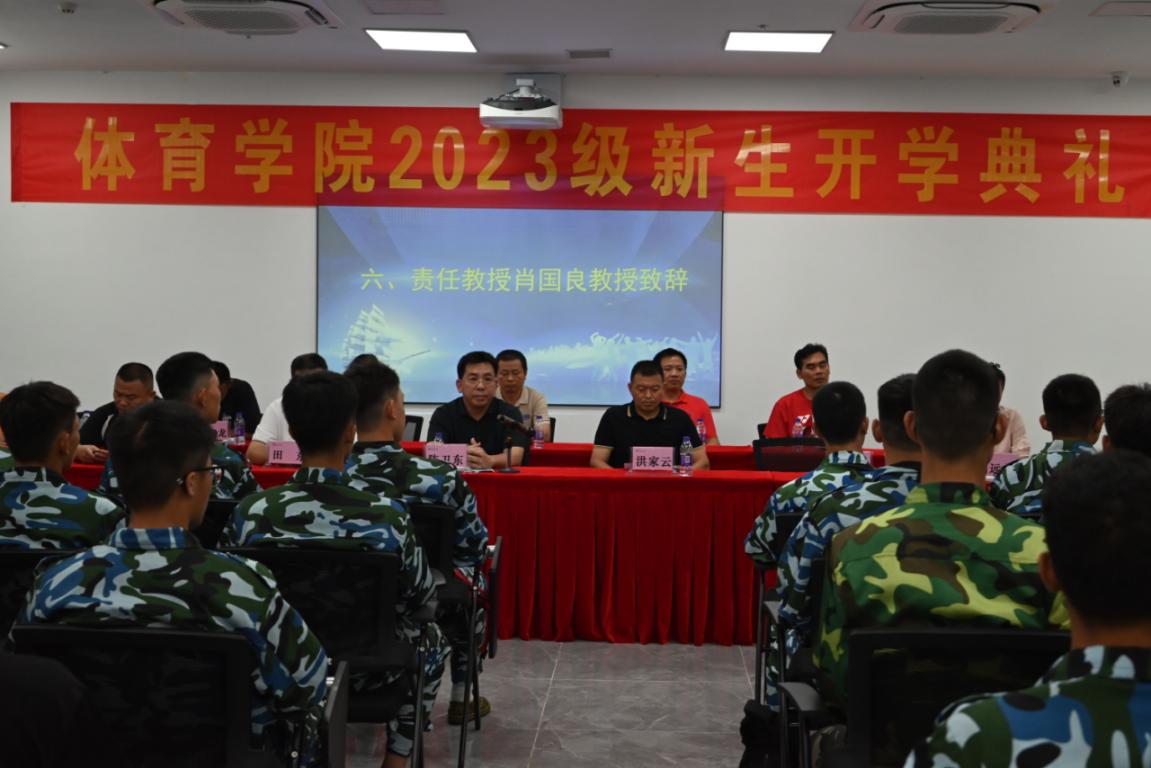 典礼上,责任教授肖国良肖教授对休闲体育专业进行了详细的讲解,刘远花副教授代表教师发言,在校老生代表崔程洋用亲身经历分享了自己在大学的成长与收获,新生代表李億龙同学代表新生发言。