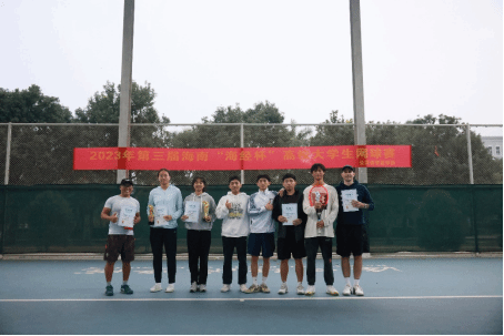 2023年12月3日至4日,由海口经济学院主办的第三届海南“海经杯”高校老员工网球赛在海口经济学院顺利举办。申博SUNBET师生代表队在本次比赛中斩获佳绩,勇夺男子单打、女子单打双冠军。